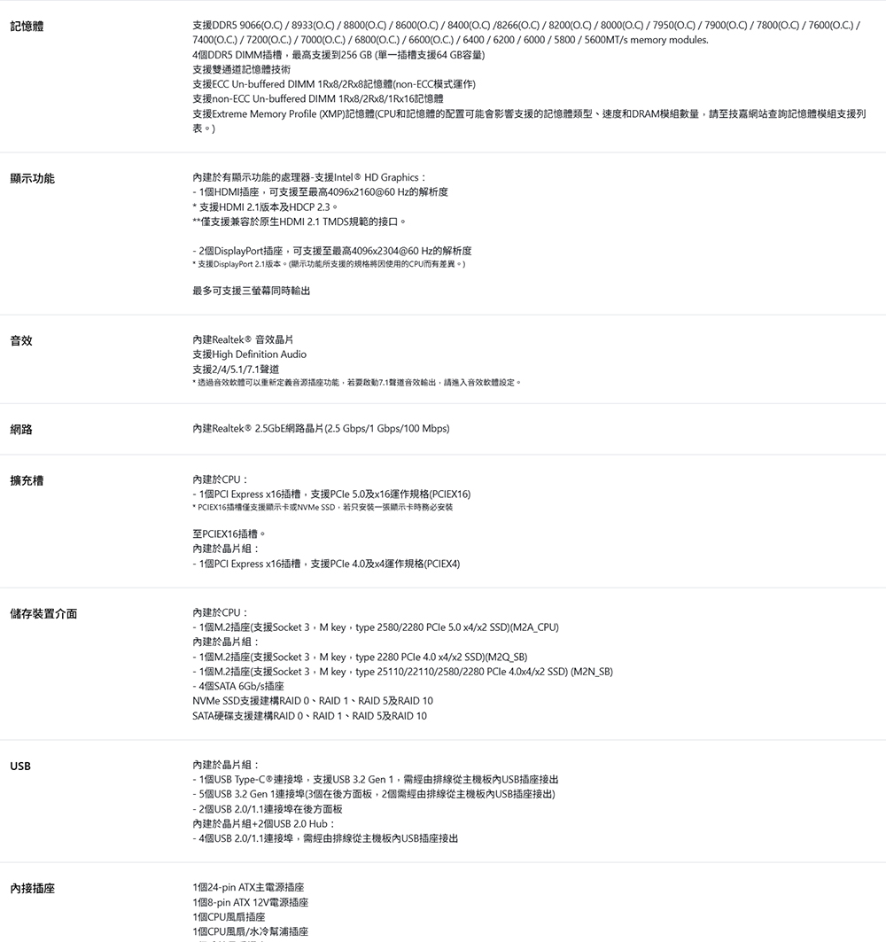 最佳相容性 : 4組DDR5記憶體,支援XMP 記憶體模組